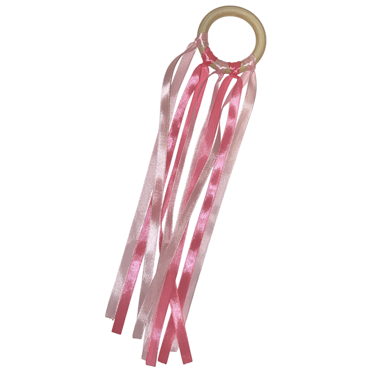 La Anilla Waldorf, también conocida como cintas del viento ya que es el mismo viento el que formará parte del juego cuando el peque las agite y se mueva con ellas, es un juguete y herramienta de aprendizaje utilizado en la pedagogía Waldorf y el enfoque Montessori. A partir de los 4 meses se le puede también ofrecer pues estarán preparados para agarrarlo y añadirlo al cesto de los tesoros.