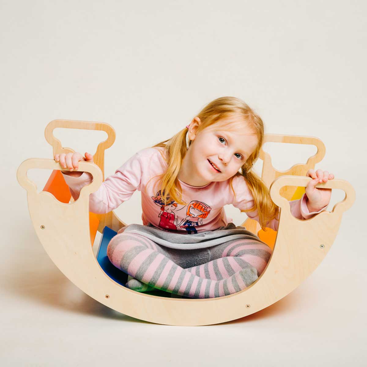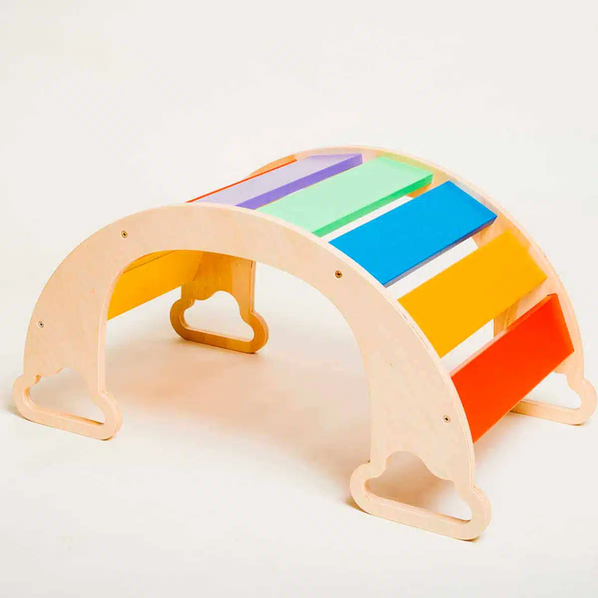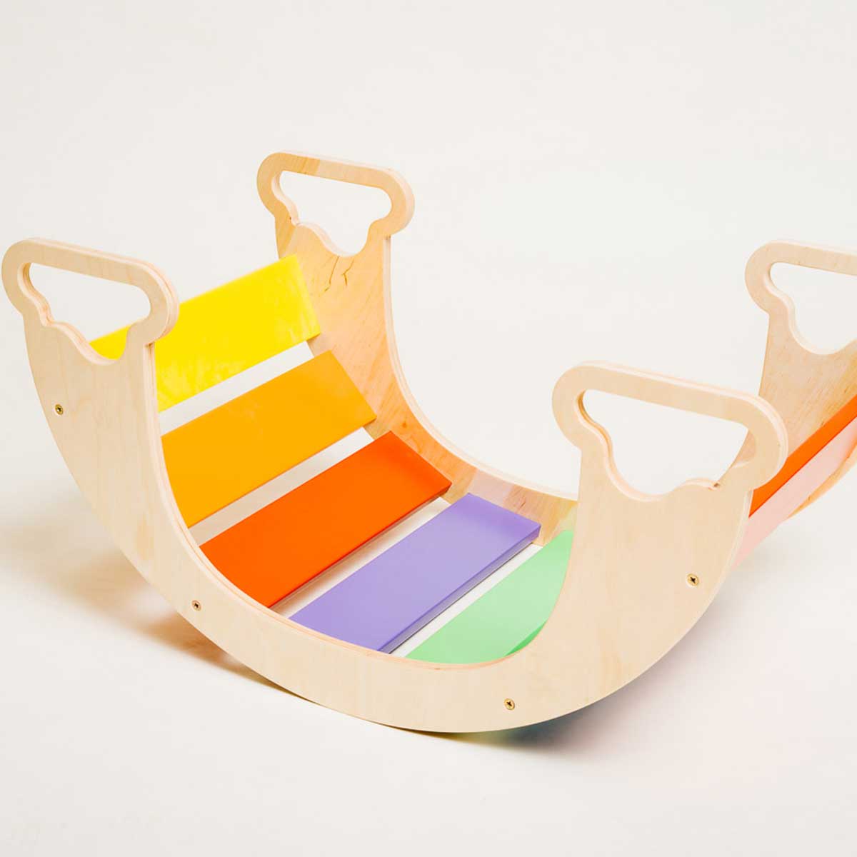 Inicio Mobiliario Montessori Balancín Waldorf Pikler en madera arcoiris
