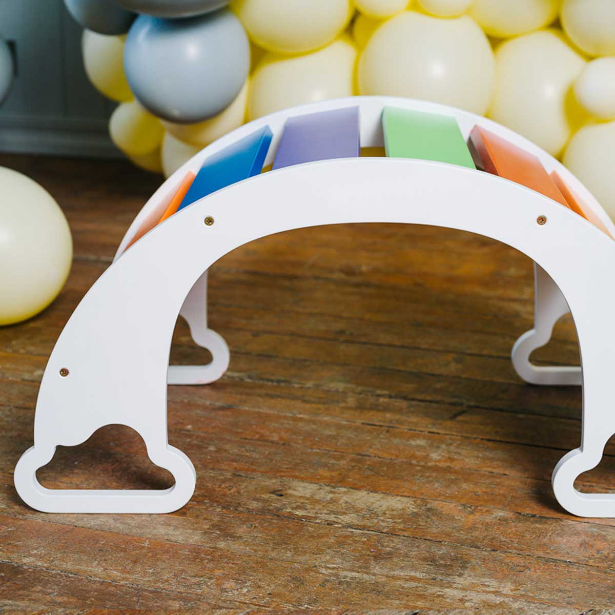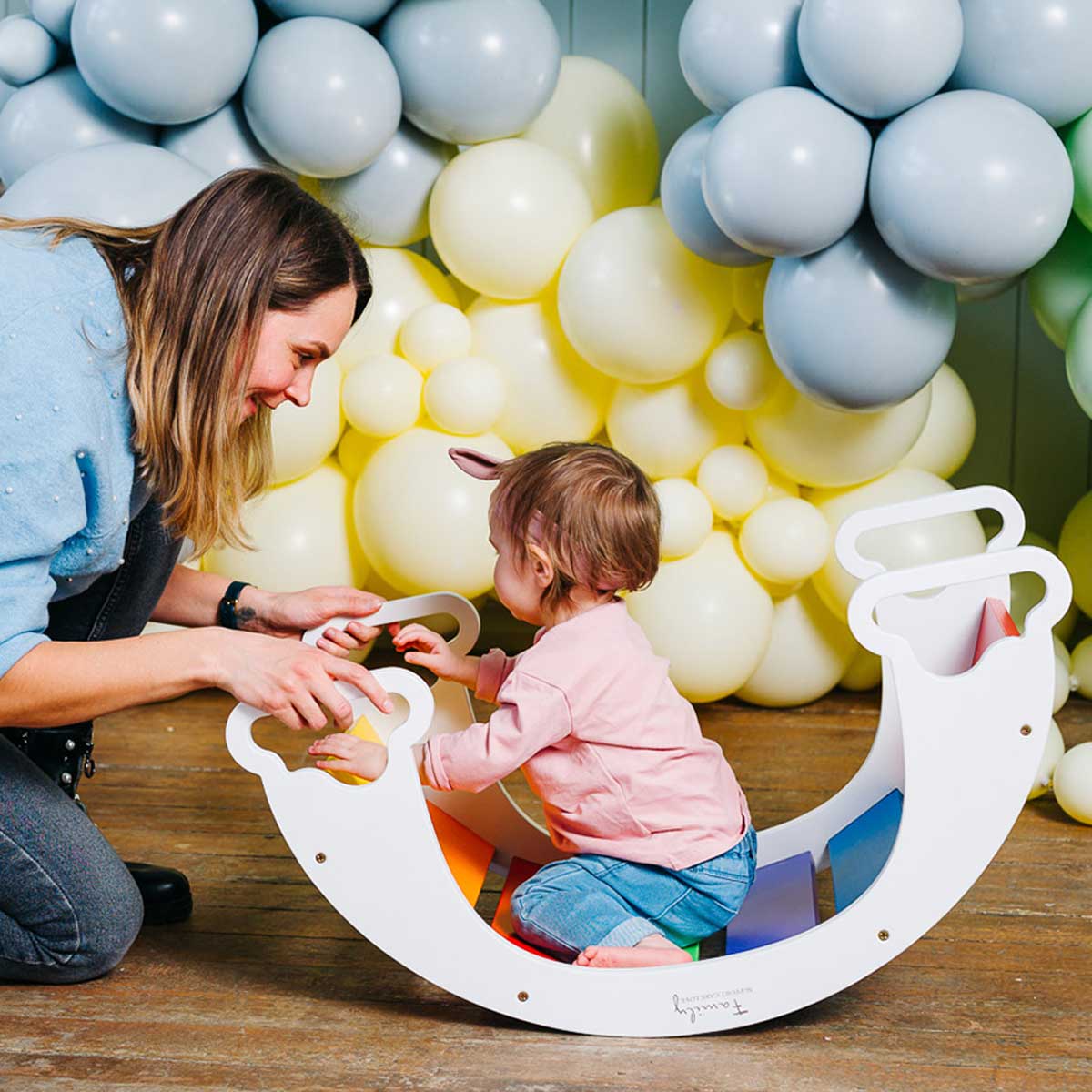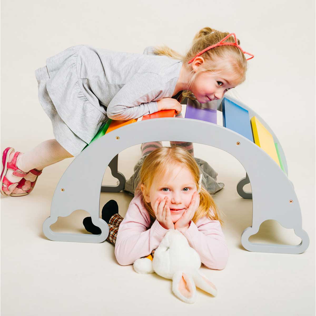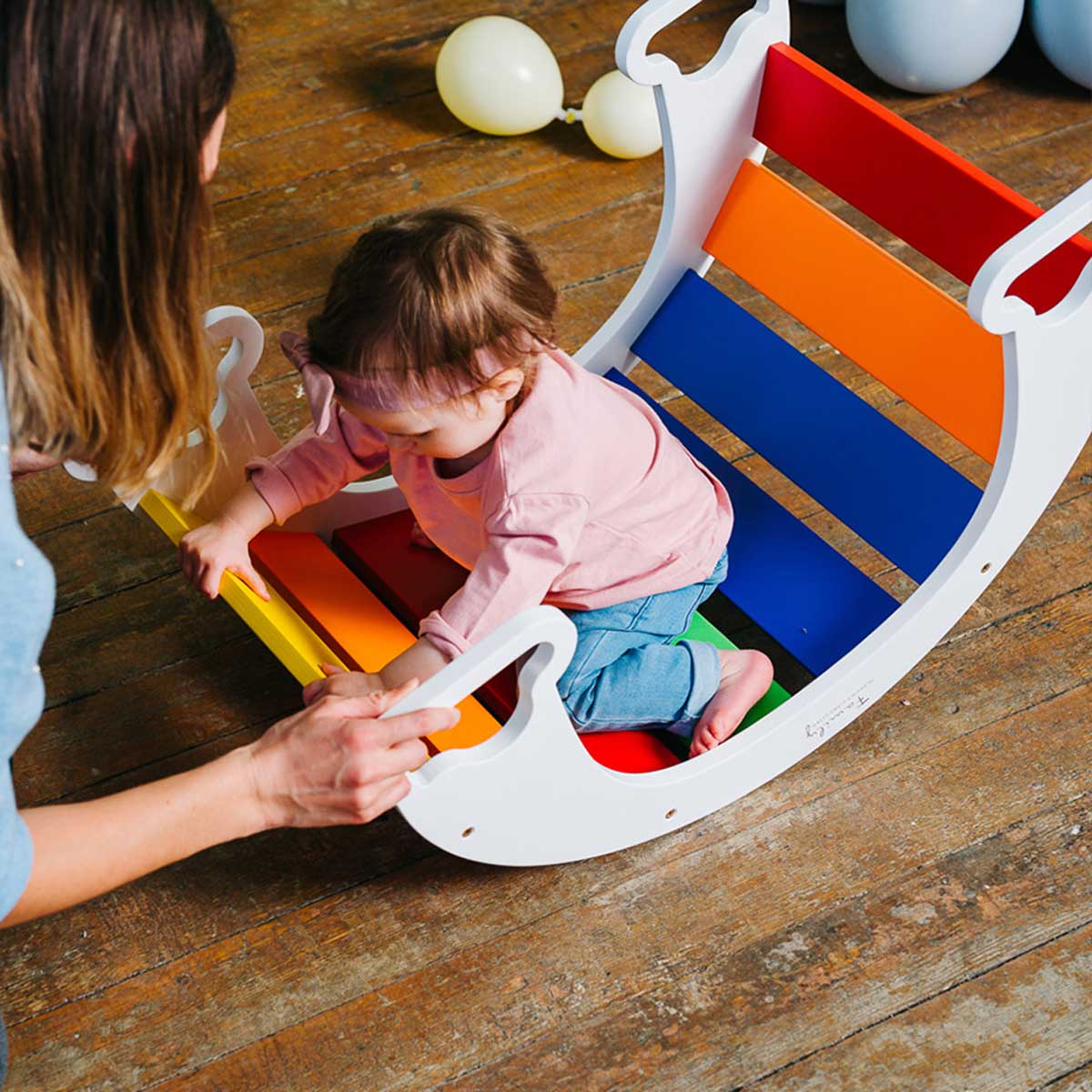 Inicio Mobiliario Montessori Balancín Waldorf Pikler en madera arcoiris