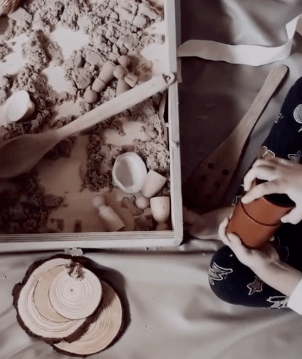 Es un accesorio versátil y funcional diseñado para fomentar el juego imaginativo y creativo en los niños. Esta bandeja espaciosa y resistente proporciona un área de juego dedicada donde los niños pueden explorar, crear y disfrutar de diversas actividades, desde construir con bloques hasta jugar con miniaturas, rompecabezas y más. Se puede incluir arena kinética (legumbres, harina…)  y manipular la arena tal cual, realizando divertidos dibujos, letras o números. Pero también se pueden incluir otros materiales naturales, además de añadir sus muñecos preferidos creando pequeños mini mundos. Los peques pasarán horas y horas explorando y manipulando, desarrollando su creatividad e imaginación. Además, esta bandeja de juego es ideal para trabajar la psicomotricidad fina realizando trazados y dibujos.