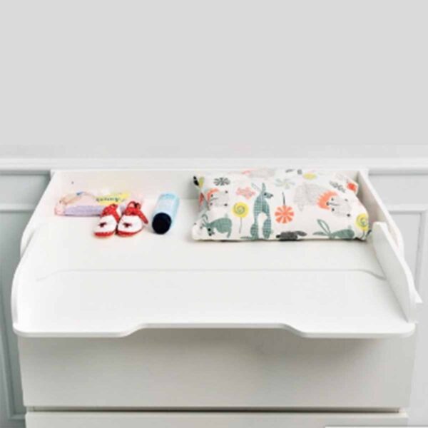 Uso a largo plazo: como el cambiador se puede transformar, se puede utilizar como estante de dos niveles, donde guardar la primera foto del bebé, álbumes, juguetes u otras cosas bonitas.