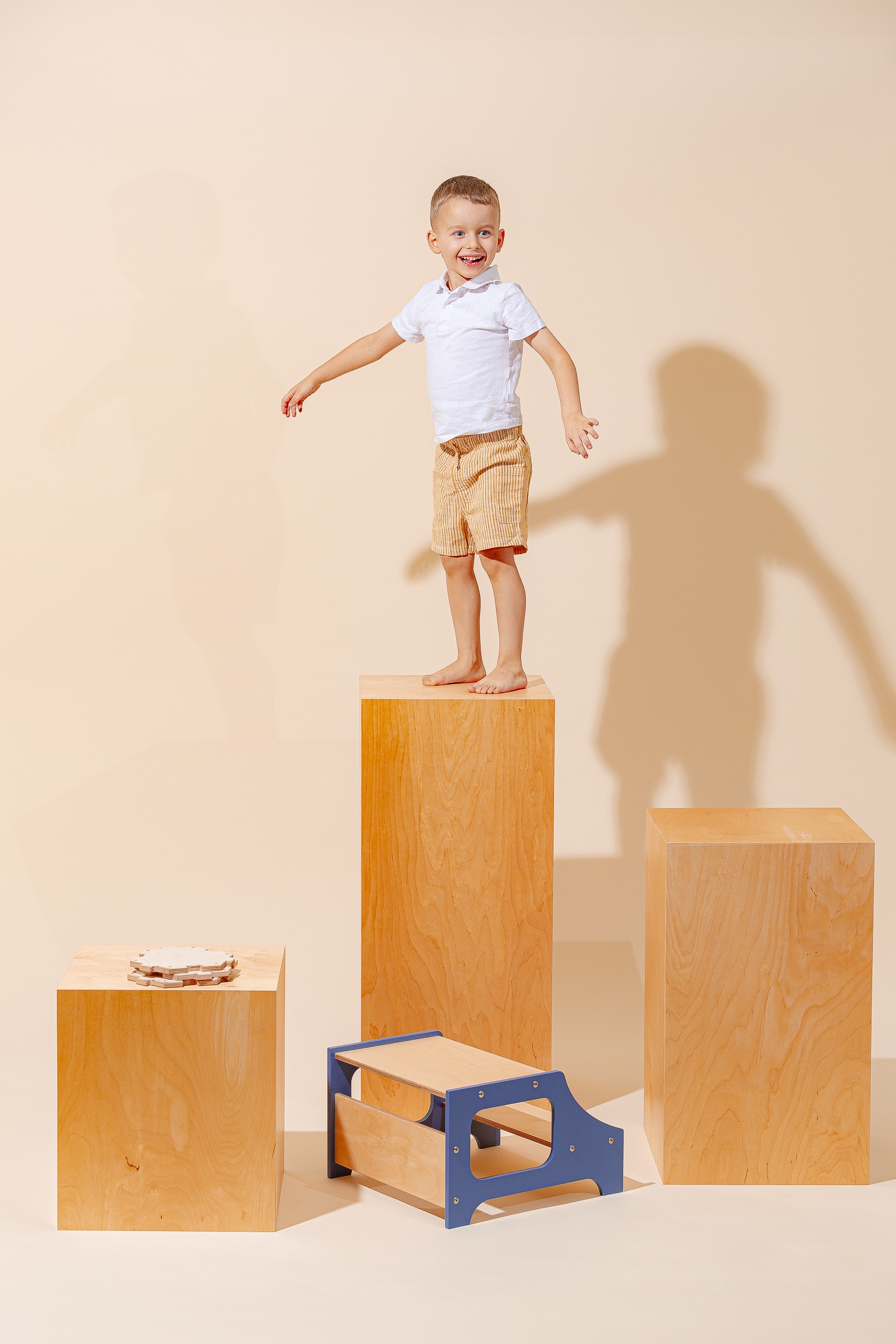Puede que no queramos que nuestros hijos crezcan y se vuelvan independientes, pero es inevitable. Lo que podemos hacer es ayudar a nuestros pequeños brindándoles las herramientas que necesitan para desarrollar su independencia, confianza y límites. El Escalón Montessori madera y azul está diseñado para adaptarse al tamaño y las necesidades de los niños.