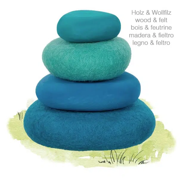 Las Piedras Waldorf de fieltro son apilables en lana, fieltro y madera crean una atmósfera relajante e inspiradora que da rienda suelta a la creatividad.