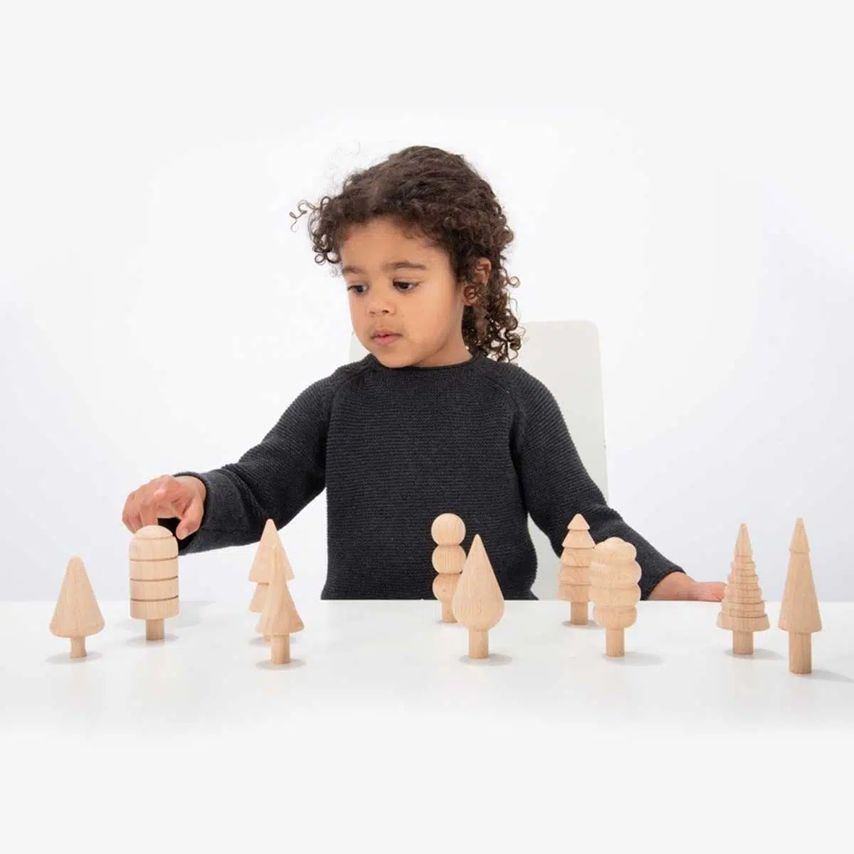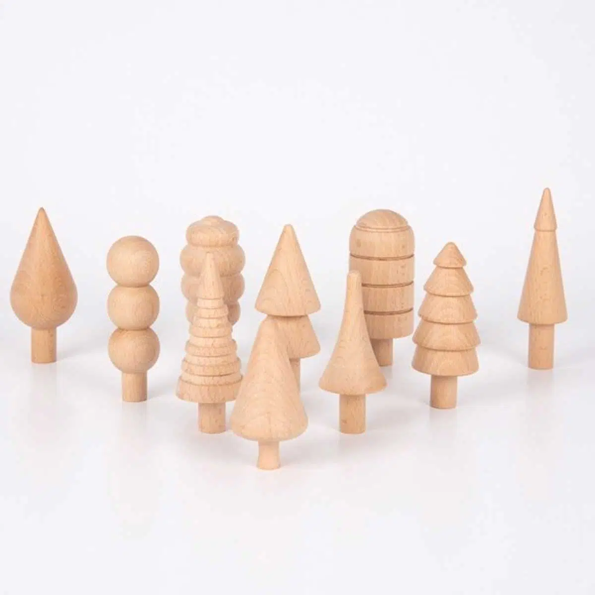 El set de 10 piezas en forma de árbol de la pedagogía Waldorf es un encantador conjunto de piezas de madera natural, que representan árboles de diferentes tamaños (de 8,5 cm a 11 cm de altura). Diseñadas para fomentar la imaginación y el juego creativo, estas piezas ayudan a los niños a explorar el mundo natural, desarrollar habilidades motoras y disfrutar de la diversión del juego abierto. Estimula la imaginación y el juego creativo en los niños!