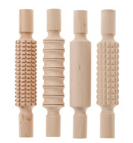 Conjunto de 4 Rodillos de madera para plastilina o arena. Para hacer diseños sobre plastilina, barro o cualquier otro tipo de masas suaves, también se pueden utilizar sobre arena.