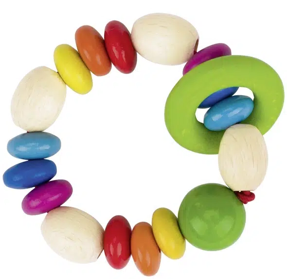Los sonajeros de madera son imprescindibles para las manos del bebé. Accionan el reflejo de la mano de agarrar y estimulan el desarrollo del tacto. Transmiten sensaciones e impresiones que ayudan al bebé explorar su entorno. Es un material Montessori ya que cumple con los principios de una buena estimulación temprana.