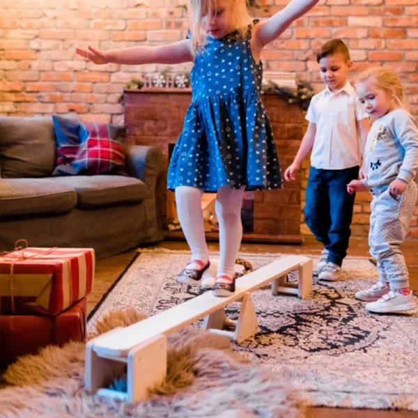 Mejora del equilibrio y la postura: El balanceo en una tabla curva ayuda a mejorar el equilibrio y la postura corporal. Al desafiar constantemente el equilibrio, los niños desarrollan una mayor conciencia de su cuerpo y mejoran su capacidad para mantener una postura adecuada.