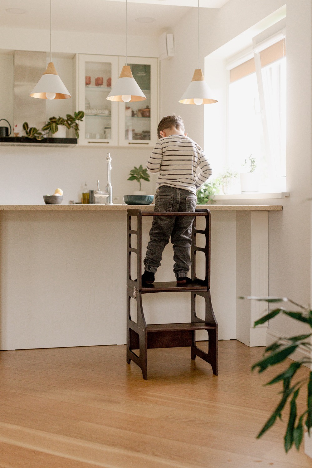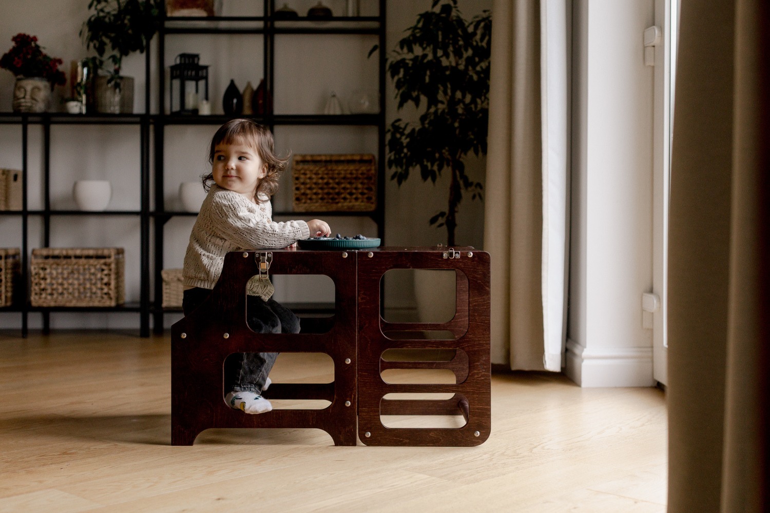 La Torre de aprendizaje Montessori en madera natural convertible en mesa silla ¡Ayuda a fomentar la autonomía de los más pequeños!. Aprenderán mientras juegan, pasaréis más tiempo en familia y ganará autonomía. De torre de aprendizaje se transforma a mesa y silla!. El diseño minimalista se adapta perfectamente a cualquier estilo de interior. No te arrepentirás de tener una en tu casa!
