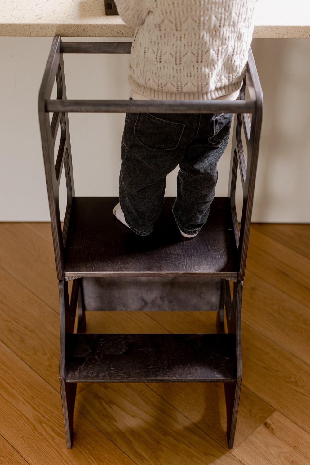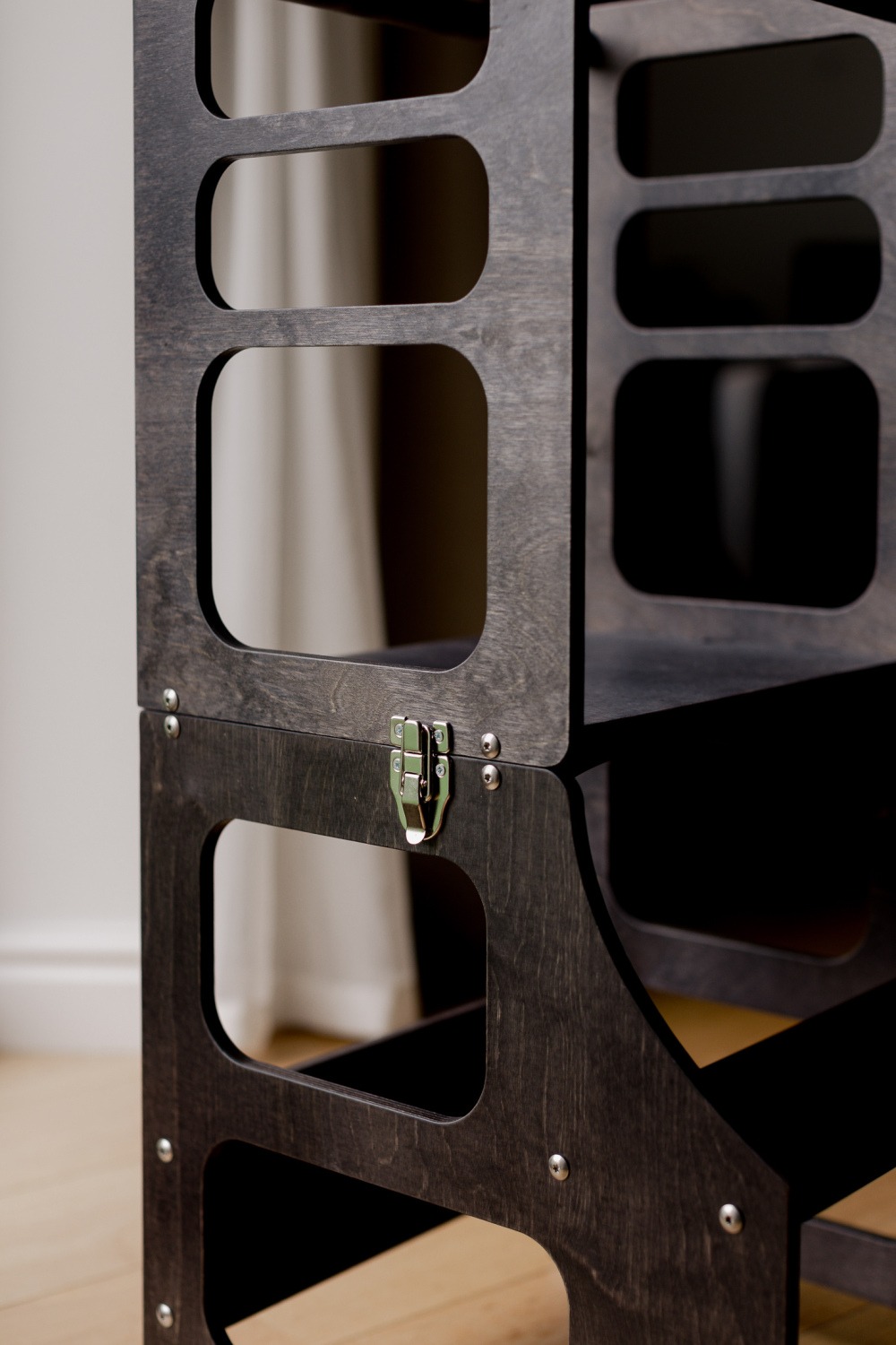 Torre aprendizaje Montessori en madera natural MIDNIGHT BLACK Convertible mesa silla
