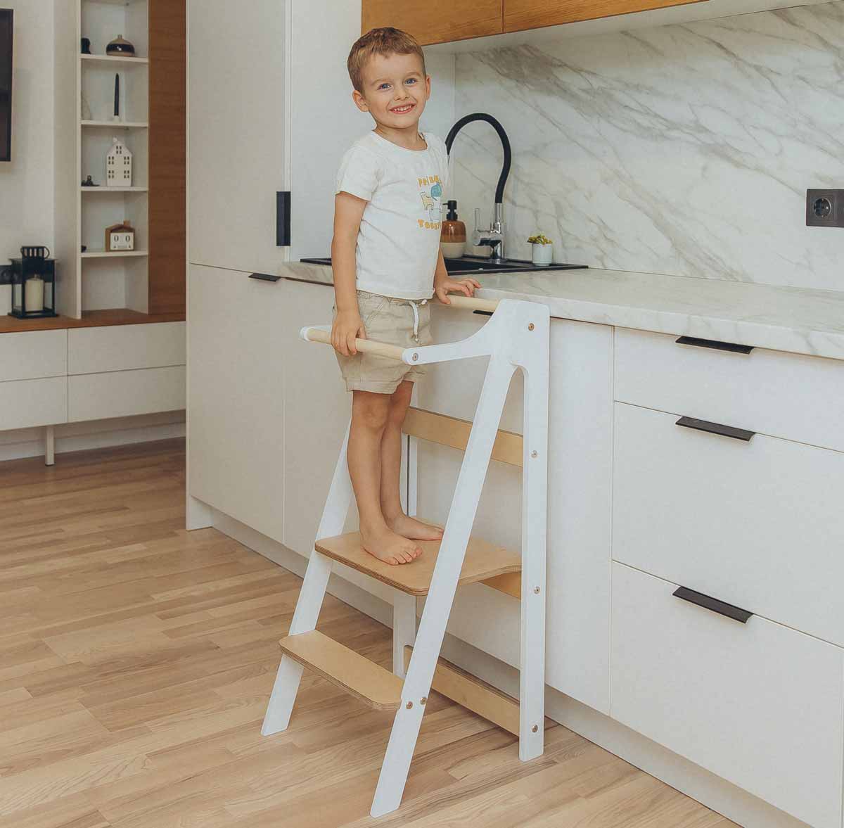 La Torre de aprendizaje abatible será un apoyo para el peque durante mucho tiempo. Es muy duradera, lo que significa que también un adulto puede subirse a él para recoger algo en los estantes más altos. Además, está creada de acuerdo con las normas de seguridad, proporcionando un entorno seguro. Es importante  el hecho de que es plegable, por lo que no ocupa mucho espacio.