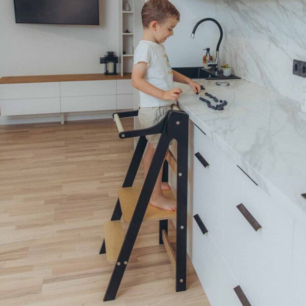 Torre de aprendizaje Montessori abatible Madera Natural y Negro 169,00€