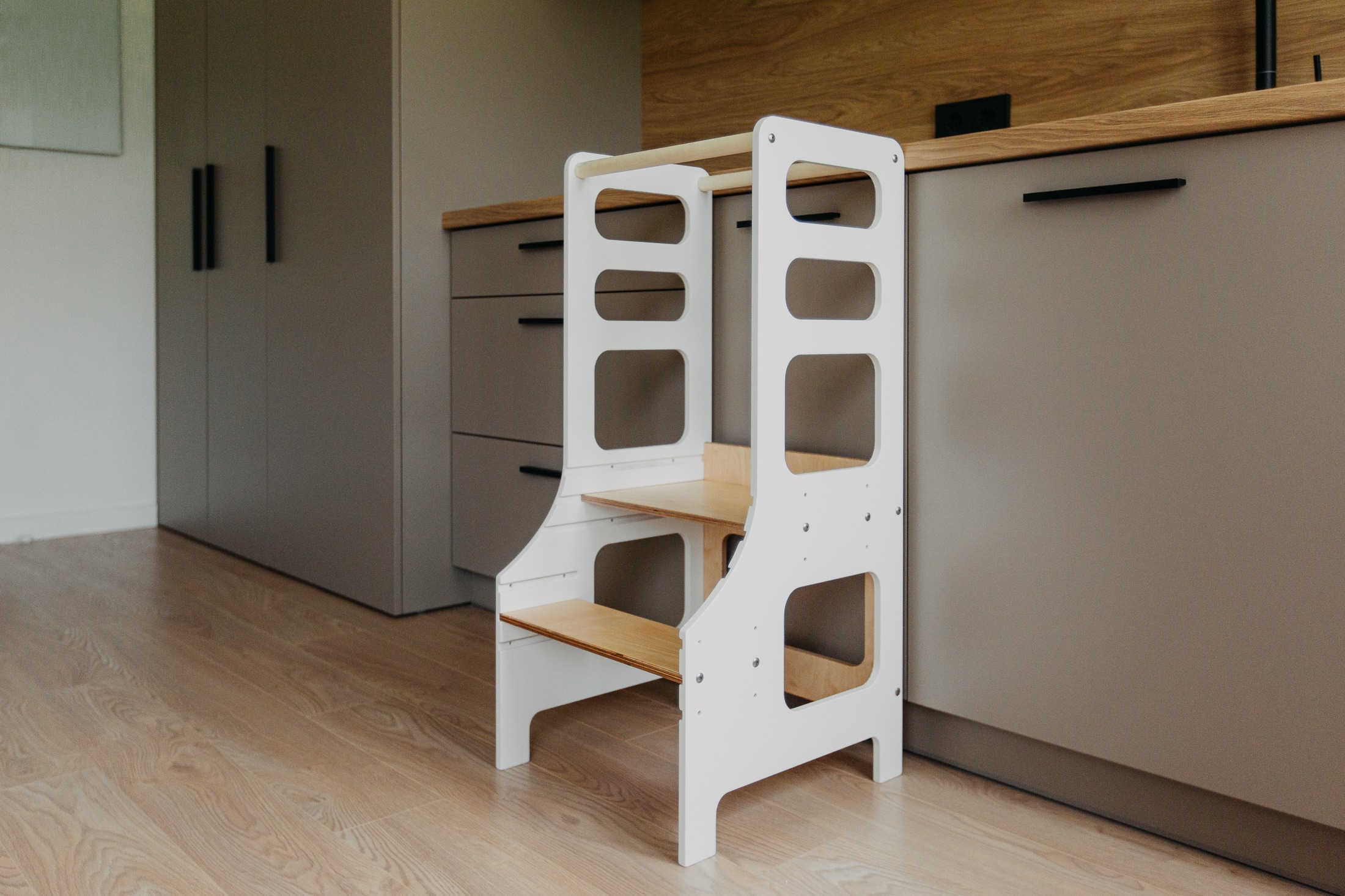 2. Estimular el aprendizaje: La torre de aprendizaje proporciona a los niños una plataforma segura y estable desde la cual pueden explorar y aprender sobre su entorno.2. Pueden observar y participar en actividades domésticas, lo que les permite adquirir conocimientos prácticos y desarrollar habilidades cognitivas.