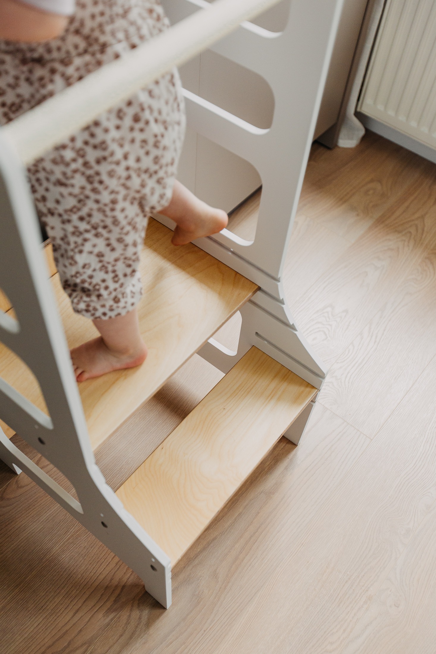 Inicio TIENDA COMPLETA Torre de aprendizaje Montessori ajustable blanca