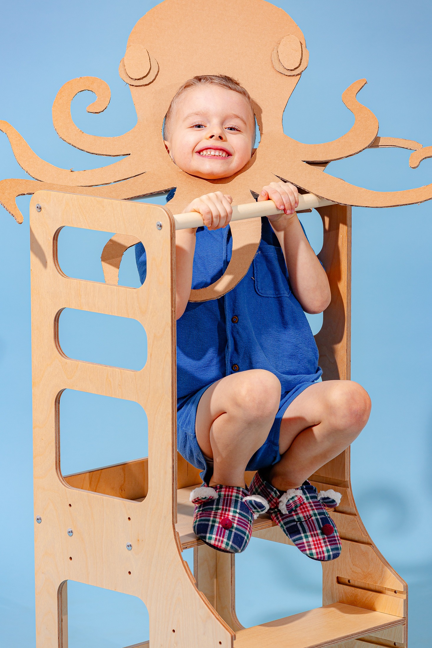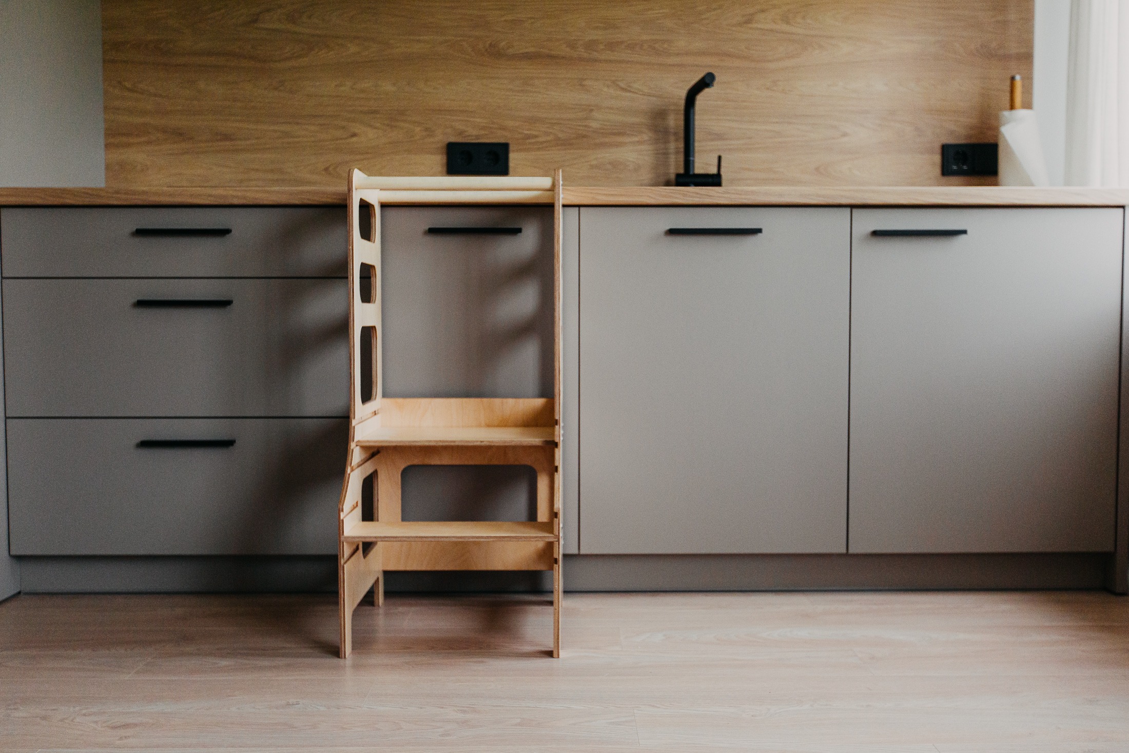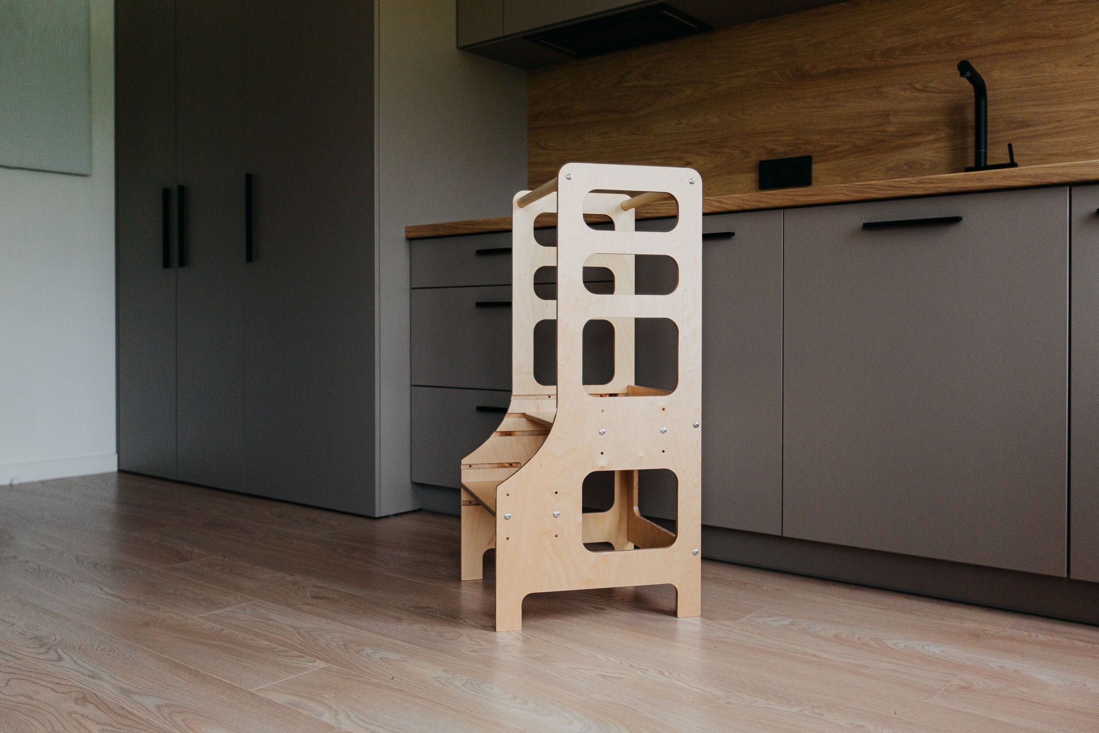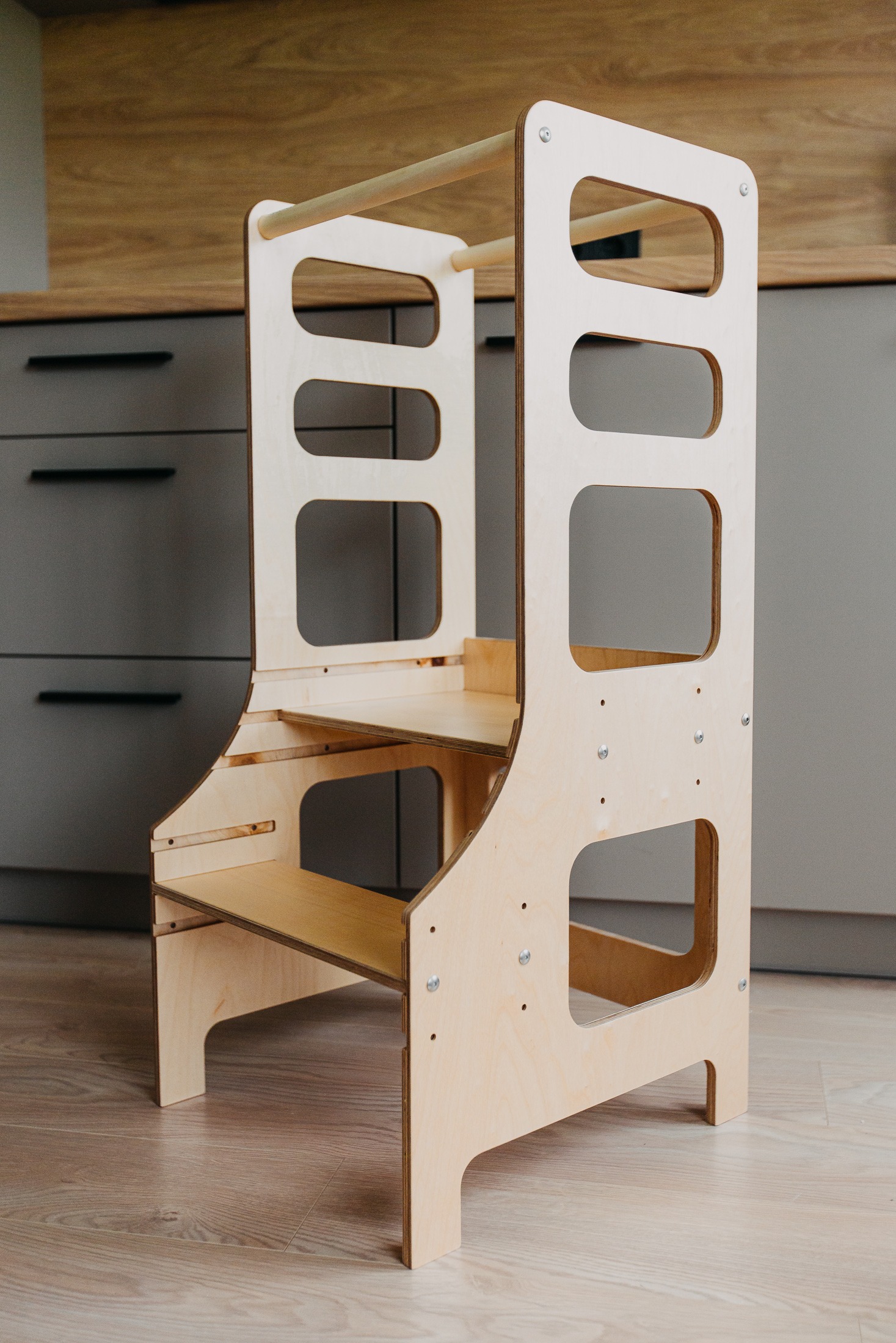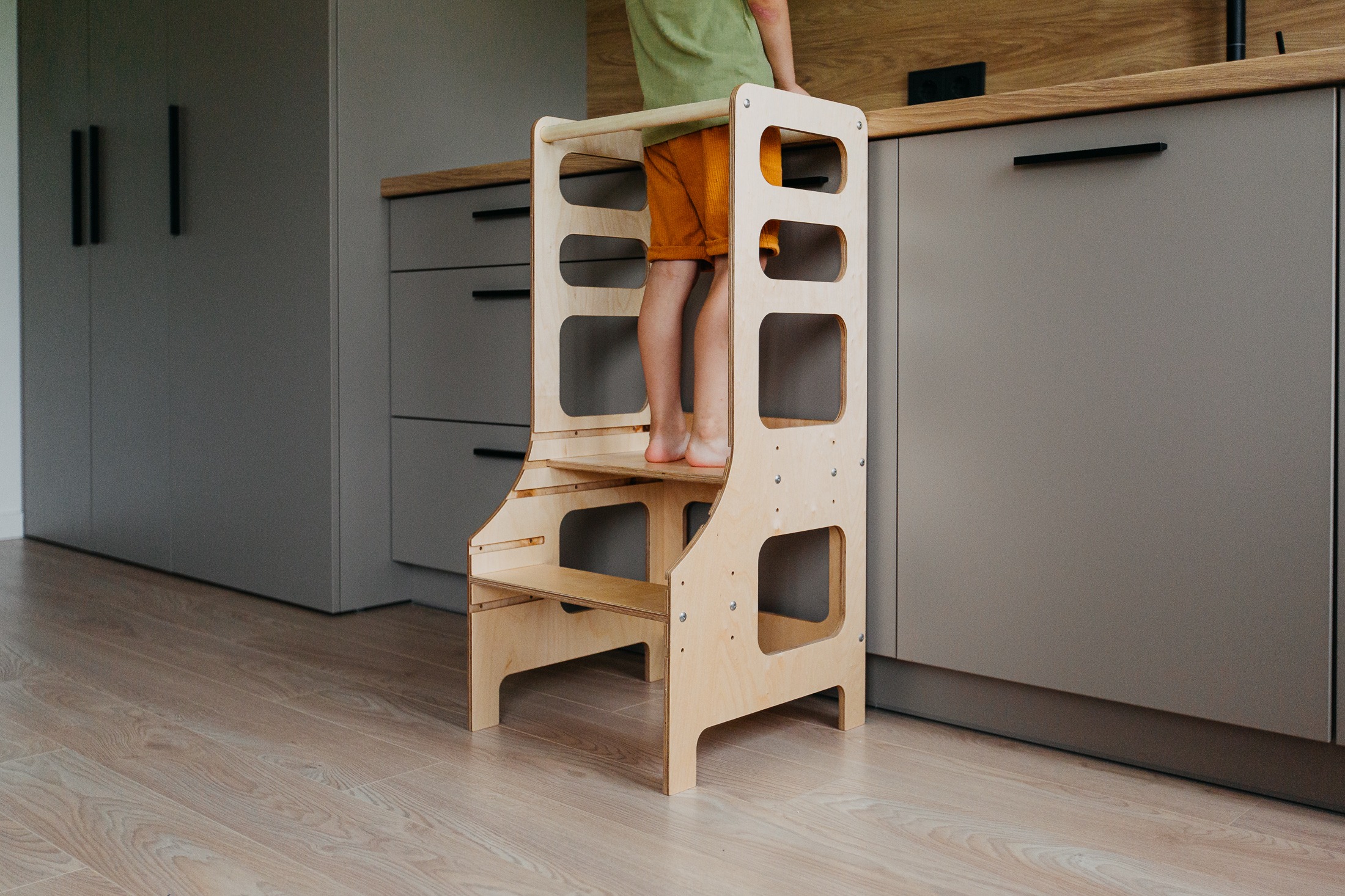 Está diseñada con materiales resistentes y estables, proporcionando un entorno seguro para que los niños exploren y aprendan. Cuentan con barandilla y sistemas de seguridad para evitar caídas o accidentes. La torre de aprendizaje permite experimentar la satisfacción de ser capaces de realizar actividades por sí mismos, lo que contribuye a su crecimiento emocional y psicológico. Los escalones pueden ajustarse a la altura deseada.  Tu hijo lo podrá hacer solo!  El diseño minimalista se adapta perfectamente a cualquier estilo de interior. No te arrepentirás de tener una igual en tu casa. Tiempo de producción: 10 – 15 días